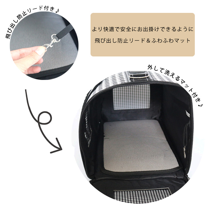 ペットキャリー 折りたたみペットキャリー Mサイズ お出かけ 散歩 病院 旅行 メッシュ素材 通気性抜群 ベルト付き キャリーケース 飛び出し防止リード付き 快適 安全 ふわふわマット 洗えるマット付き 2wayタイプ 手持ち 肩掛け