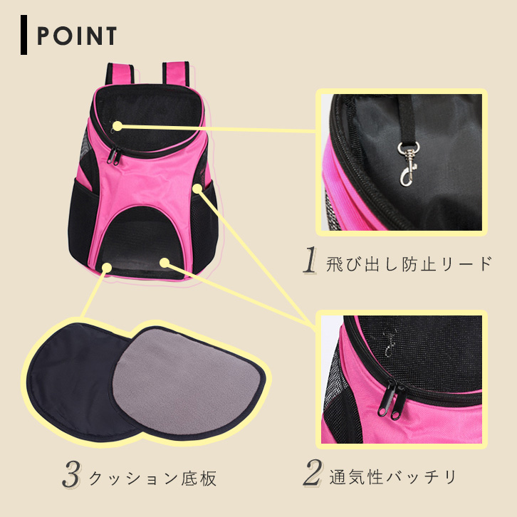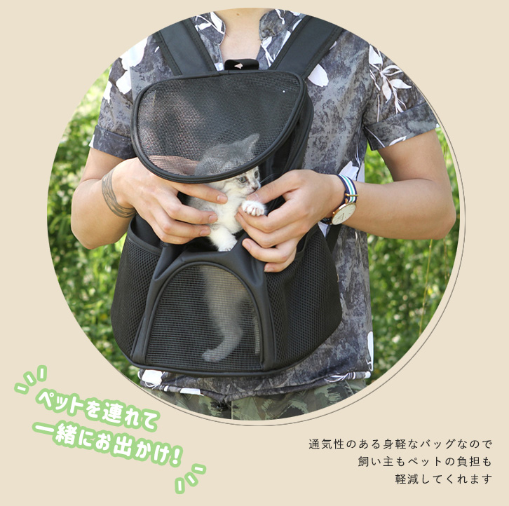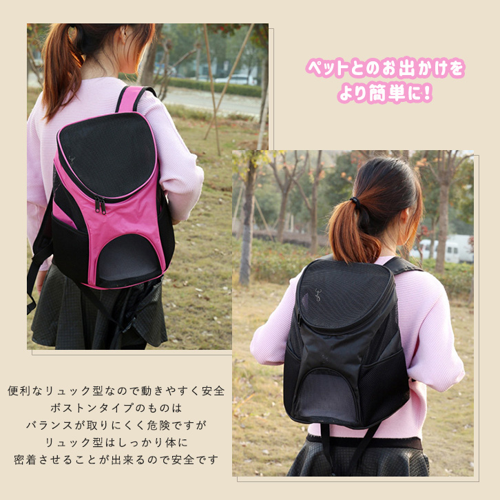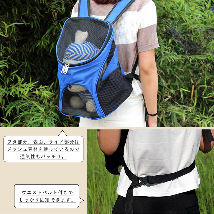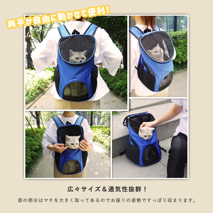 ペットキャリー ペットキャリーリュック リュック型 ペットバックパック ペット用品 お散歩 お出かけ 通気性抜群 ハンズフリー 広々サイズ マチ広め メッシュ素材 ウエストベルト クッション底板 飛び出し防止リード 全4色 猫 犬
