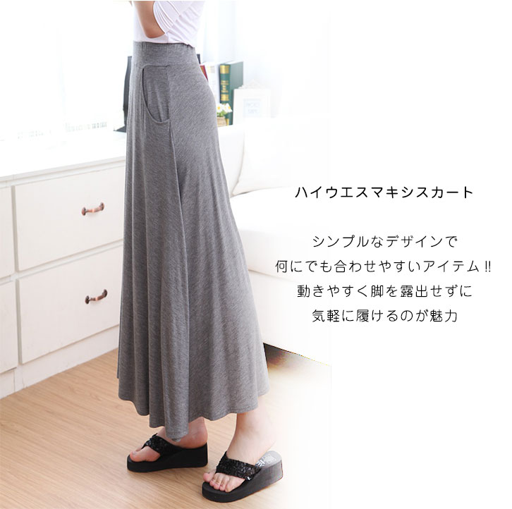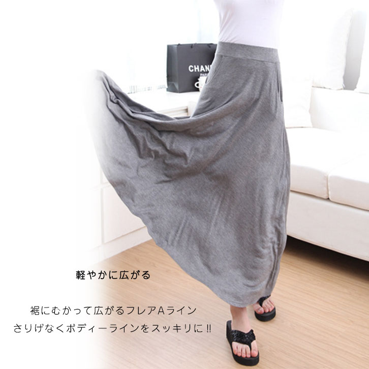 マキシスカート マキシ フリーサイズ ハイウエストマキシスカート シンプル ハイウエスト 着回し抜群 合わせやすい ウエストゴム 伸縮性あり 着脱簡単 らくちん サイドポケット付き Aライン 細魅せ 美シルエット 着心地抜群 透けにくい