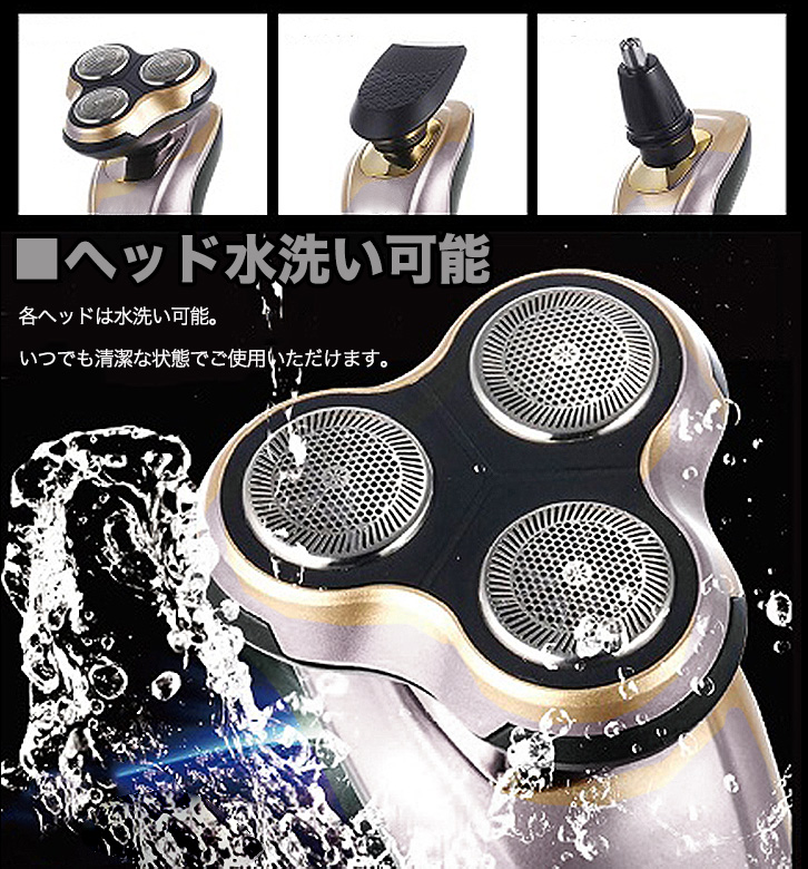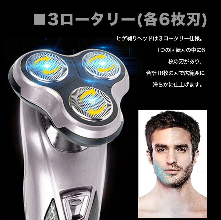 シェーバー 電動シェーバー 髭剃り 3wayシェーバー 3ロータリー式 6枚刃 水洗い可能 軽量 効率的 スピーディー ヘッド交換可能 髭剃り トリマー 鼻毛カッター 便利 アタッチメント取り換え 衛生的 デイリー使い 出張 旅行