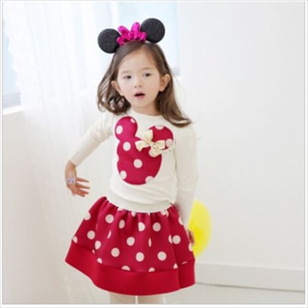 【上下2点セット】 子供服 キッズ服 女の子 ロンT 長袖 スカート シャツ 黒 灰色 水玉模様 ミッキーチャン型 超可愛い 子供コスチューム 衣装 プレゼント 誕生日ギフト