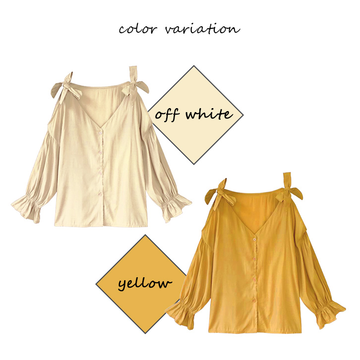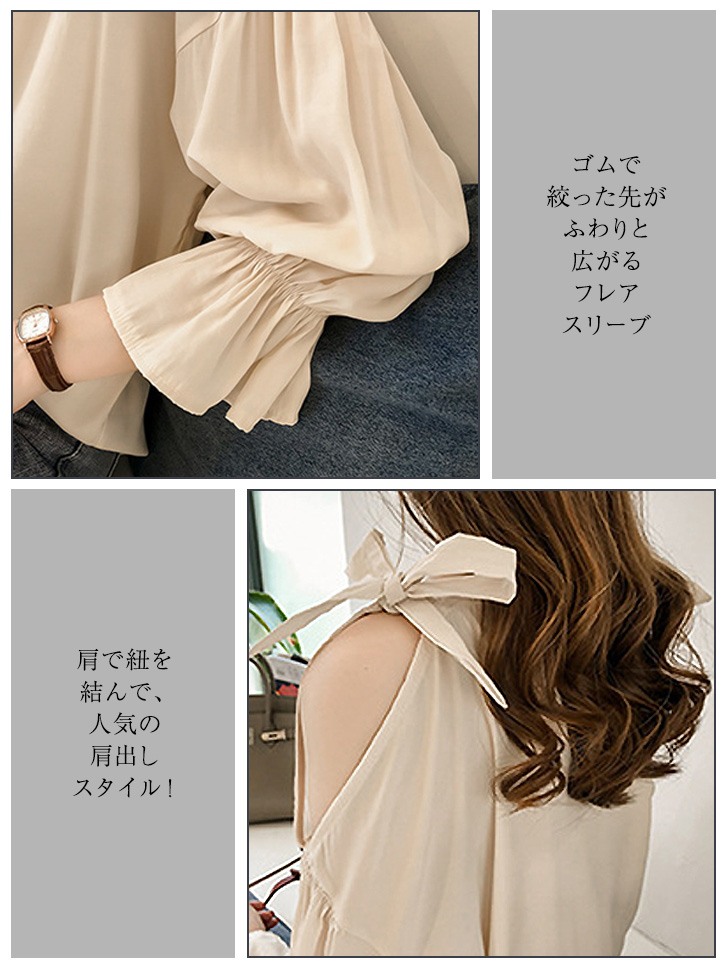 トップス レディース 長袖 秋 肩開きトップス オフショルダー フェミニン カジュアル きれいめ 大人可愛い 大人フェミニン フレアスリーブ かわいい おしゃれ オフホワイト イエロー 綿素材 肌触り抜群 肩開き 肩リボン