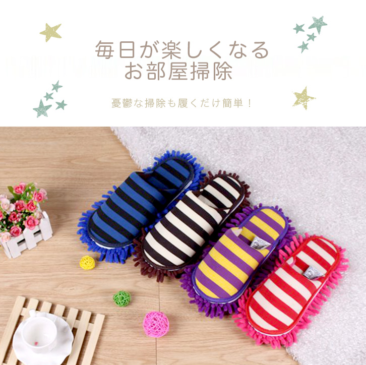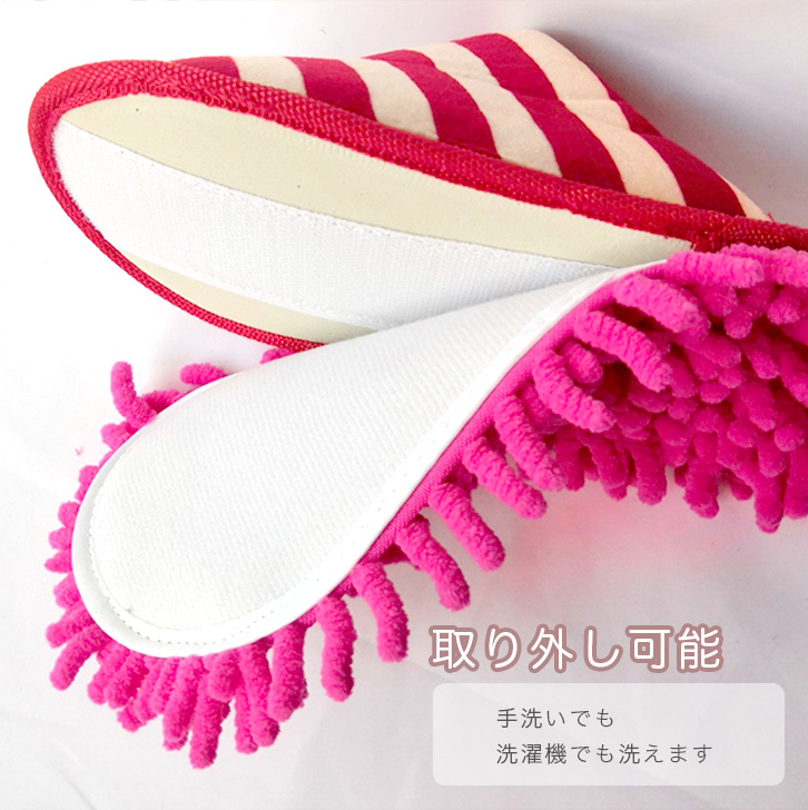 モップスリッパ かわいい 洗える お掃除スリッパ スリッパ モップ お掃除 掃除スリッパ 取り外し可能 手洗い 洗濯機可能 洗濯OK マイクロファイバー繊維 可愛い おしゃれ キュート ボーダー カラー豊富 ワンサイズ ポップ