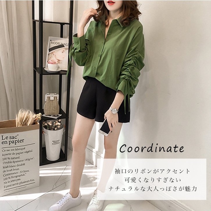 シャツ ブラウス レディース 長袖 袖リボン リボン袖 春 秋 トップス おしゃれ かわいい 大人可愛い ナチュラル カジュアル シフォンブラウス 着心地抜群 シンプル 着回し力抜群 ホワイト グリーン リボン ラフ レディースファッション