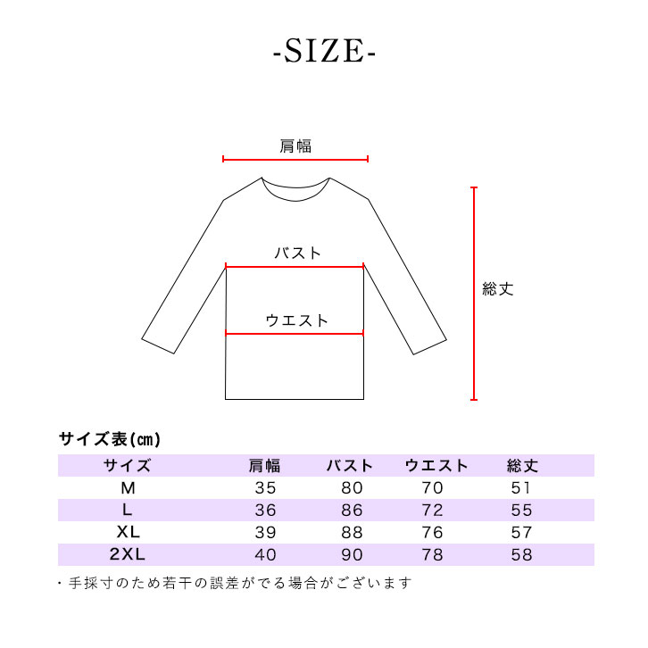 Lサイズ/肩幅36cm、バスト86cm、ウエスト72cm、総丈55cm