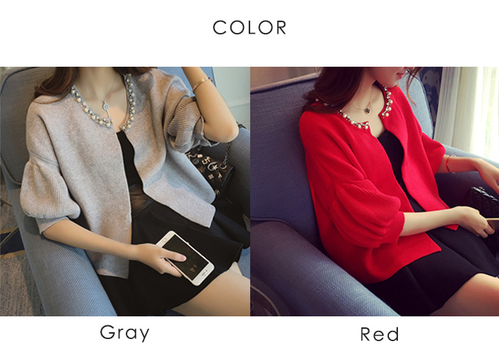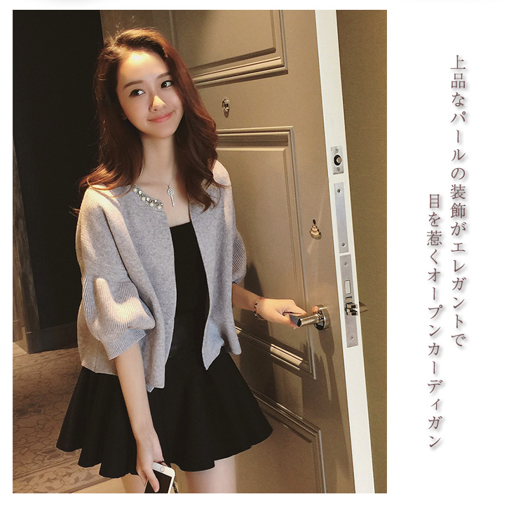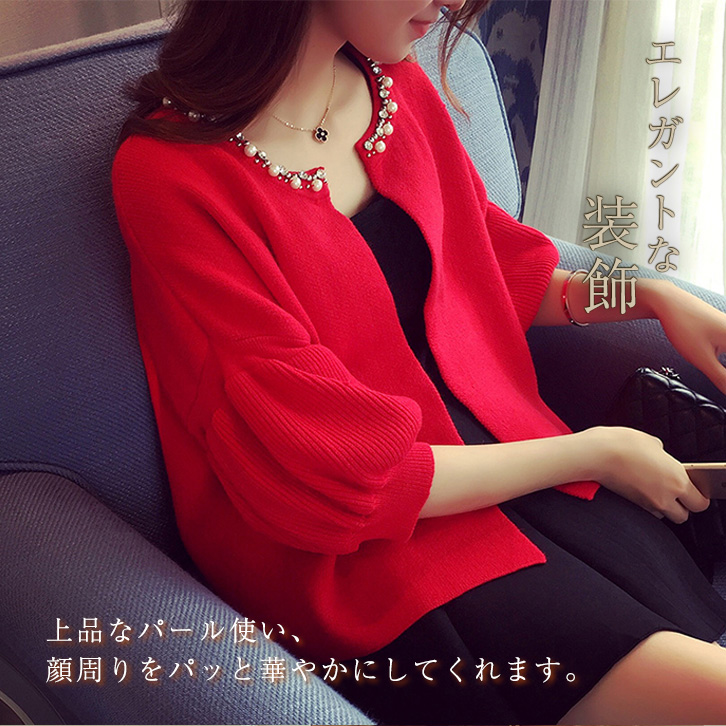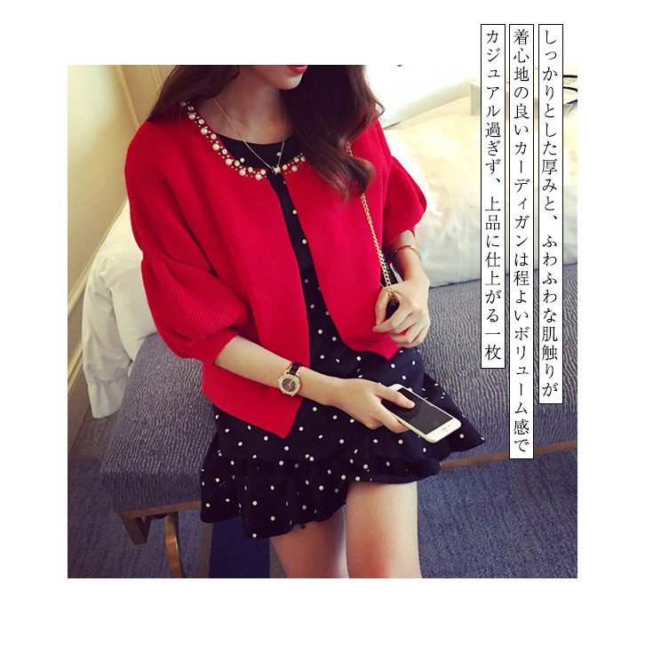カーディガン レディース 秋 五分袖 パール ビジュー エレガント 上品 可愛い ニットカーディガン ボレロ 羽織り 華やか ボリューム感 着心地抜群 冬 フェミニン 大人可愛い パフスリーブ バルーン袖 キュート おしゃれ