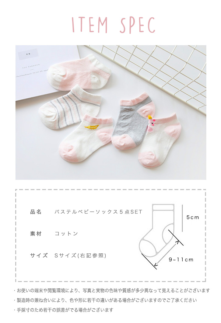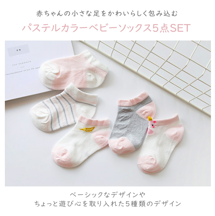 靴下 ベビーソックス ソックス ベビー靴下 ベビー用 出産祝い ギフトセット かわいい ショートソックス 赤ちゃん 5点セット コットン キュート ピンク パステルカラー 女の子 おしゃれ ベビー あんよ 通気性抜群 伸縮性