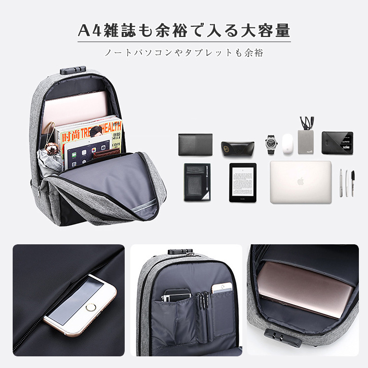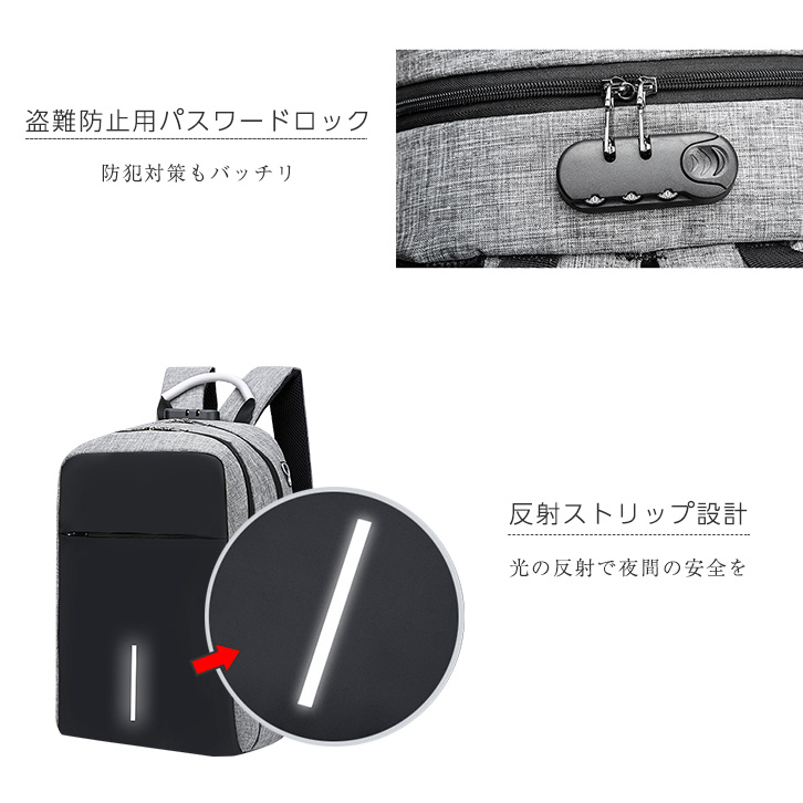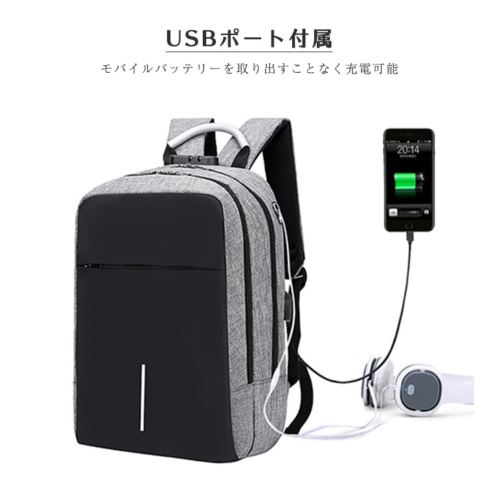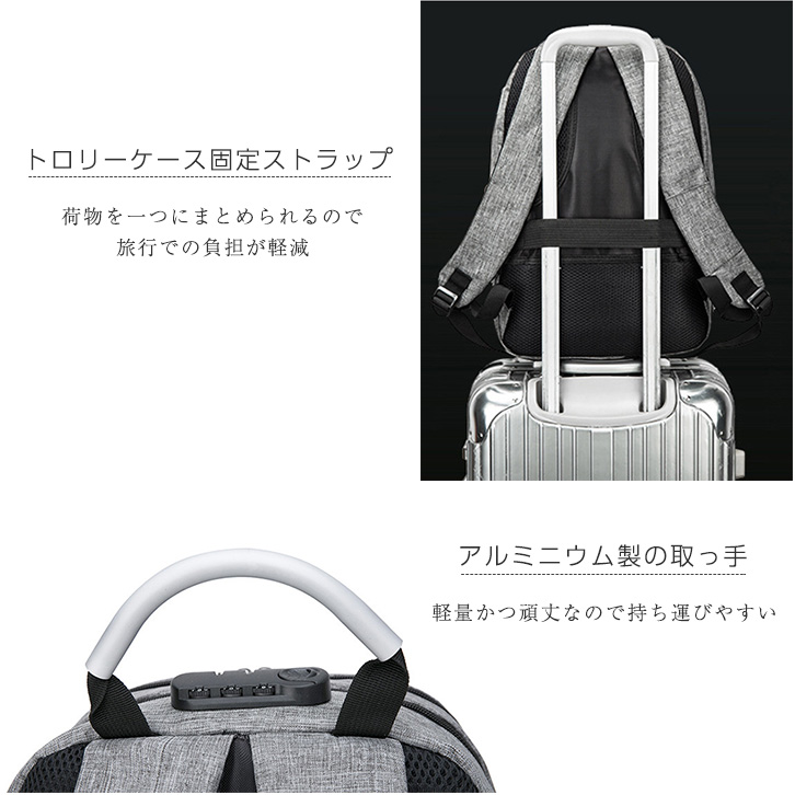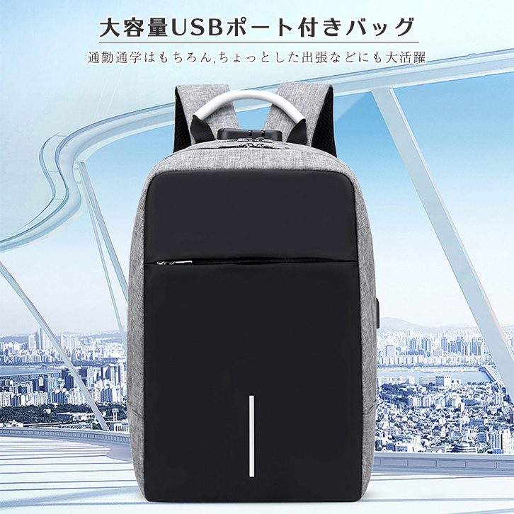 リュック バックパック メンズ 大容量 パスワードロック USBポート 通勤 通学 メンズリュック イヤホンホール リュックサック 盗難防止 出張 旅行 A4収納可能 小物収納ポケット 丈夫 ダブルジッパー開閉 アルミニウム製取っ手