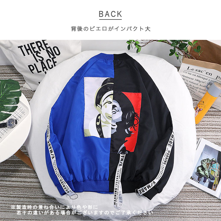 ジャケット ブルゾン メンズ ピエロジャケット ピエロ柄 ジャンパー ストリート 青 黒 レディース ユニセックス オーバーサイズ おしゃれ 個性的 ダンス ヒップホップ ペアルック ピエロ オシャレ 男女兼用 ストリート系
