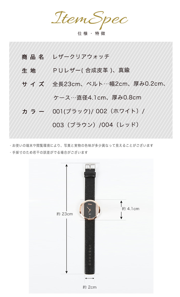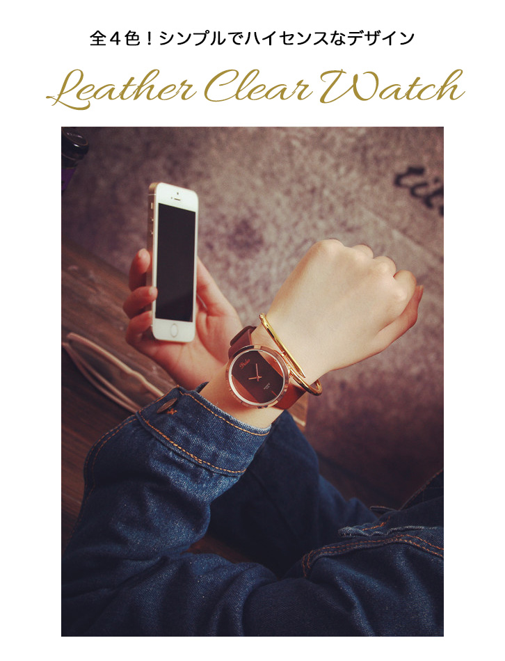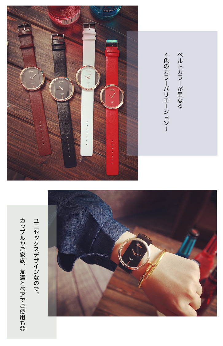 腕時計 レディース メンズ ユニセックス 男女兼用 リストウォッチ バングル クリアウォッチ フェイクレザー シンプル バングル クリア ブレスレット おそろい カップル 友達 全4カラー ブラック ホワイト ブラウン レッド
