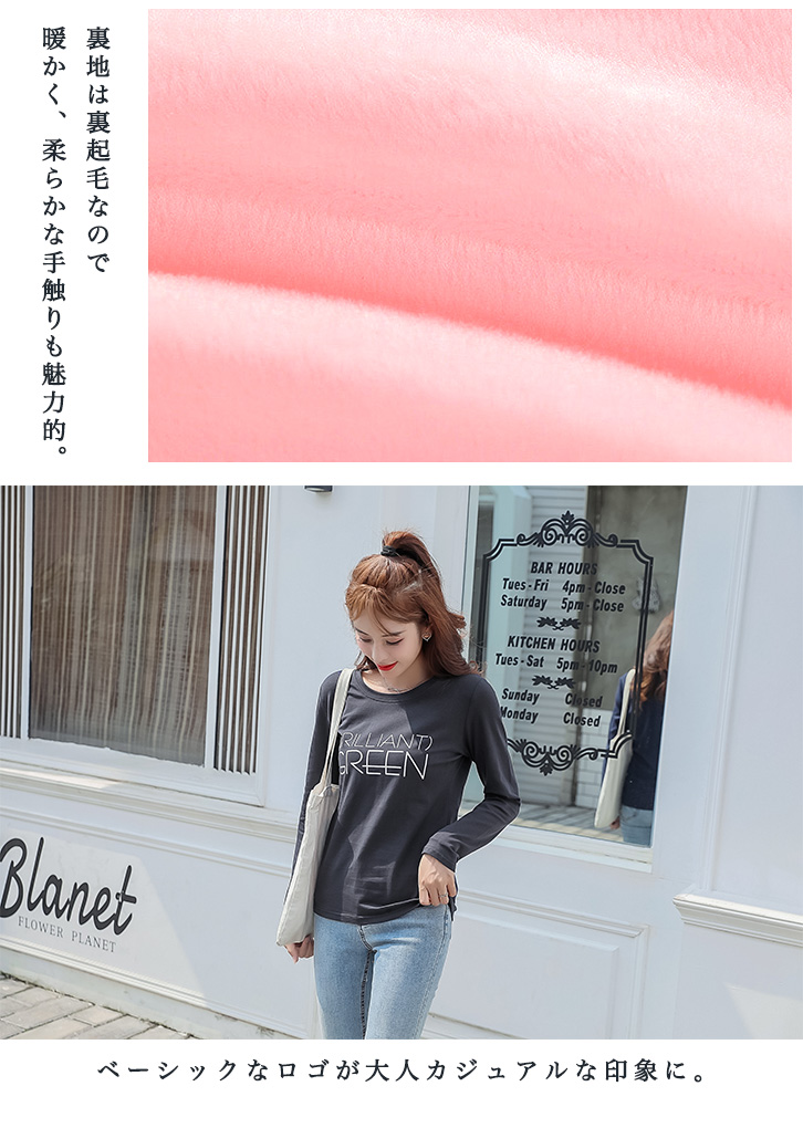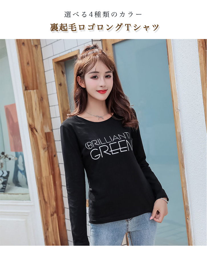 トップス ロンT レディース 裏起毛ロンT ロゴ入りロングTシャツ シンプル オシャレ かわいい 合わせやすい 着回し抜群 あったか 柔らか 手触り抜群 裏起毛 寒さ対策 大人カジュアル デイリー使い 全4カラー 冬