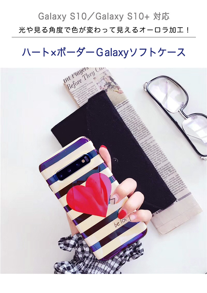 Galaxy S10 Galaxy S10プラス Galaxy S10+ ギャラクシー スマホケース スマホカバー ギャラクシー ハート ボーダー 衝撃吸収 落下防止 TPU スマホガード ソフトケース やわらかい docomo au