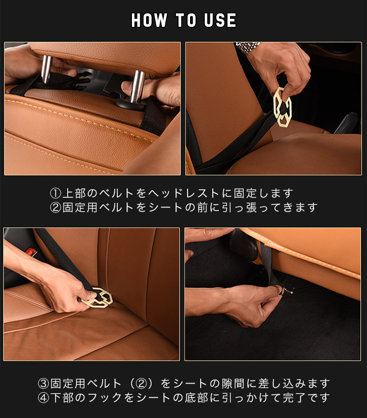 3固定ベルト(2)をシートの隙間に差し込みます。