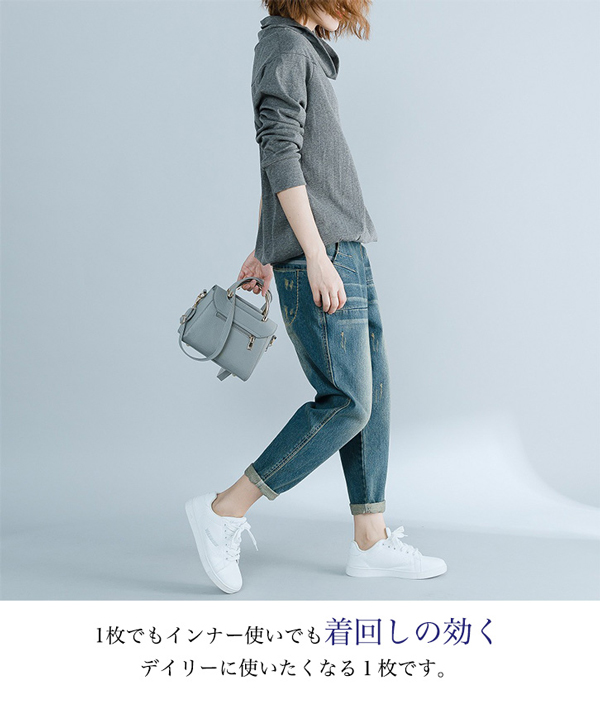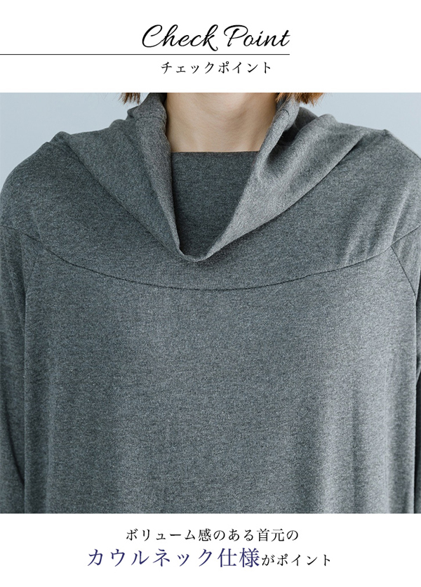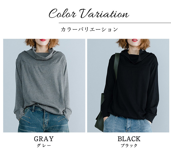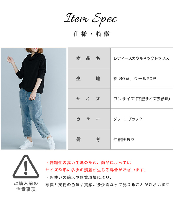 トップス レディース 長袖 カウルネック シンプル 無地 ストレッチ 綿混素材 着回し抜群 デイリー インナー グレー ブラック カウルネックトップス 着心地快適 ボリューム感 ワンサイズ カジュアル 変形シルエット オシャレ