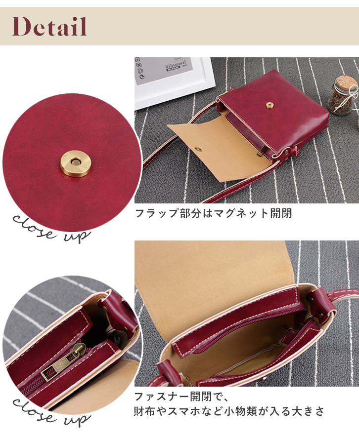バッグ ショルダーバッグ ミニショルダー 肩掛けバッグ レトロ ミニサイズ クラシカル シンプル おしゃれ かわいい デイリー 小ぶり マグネット開閉 ファスナー フェイクレザー カラー豊富 小さめ レッド ブルー グリーンブラウン ブラック