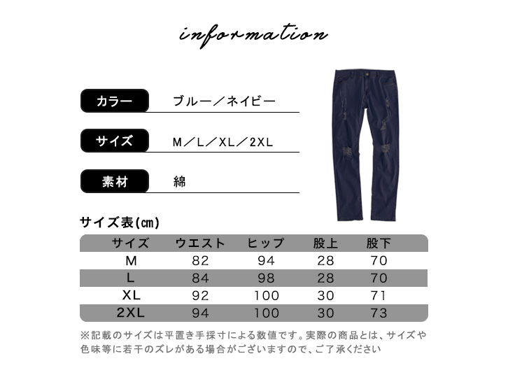 2XLサイズ/ウエスト94cm、ヒップ100cm、股上30cm、股下73cm