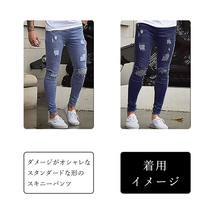 デニム メンズ スキニーパンツ ダメージデニム ダメージ加工 スキニーデニムパンツ 男性 カジュアル スタンダード おしゃれ かっこいい ボトムス ズボン オールシーズン ロングパンツ ジーパン ダメージデニムパンツ