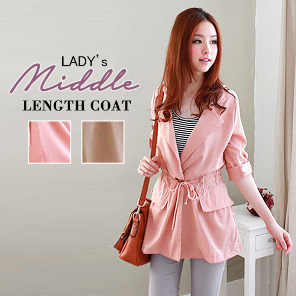 コート レディース ミドル丈 レディースコート 秋 冬 春 長袖 五分袖 アウター ジャケット 羽織り ミドル丈コート カジュアル 大人カジュアル 大人かわいい おしゃれ シンプル 着心地快適 ロールアップ ウエスト紐