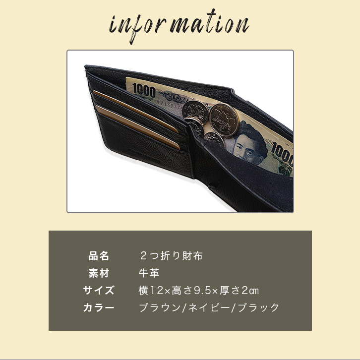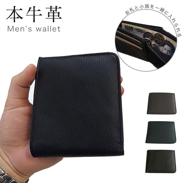 財布 メンズ 二つ折り 本革 シンプル 二つ折り財布 本牛革 紙幣 小銭 カード収納 ブラウン ネイビー ブラック シンプル 高級感 レザー プレゼント ギフト お祝い メンズ財布 誕生日 折りたたみ財布 メンズ財布