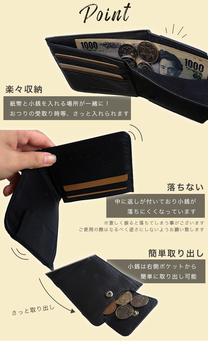 【仕様】カードポケット×7/小銭取り出し口/紙幣、小銭入れ大ポケット×1