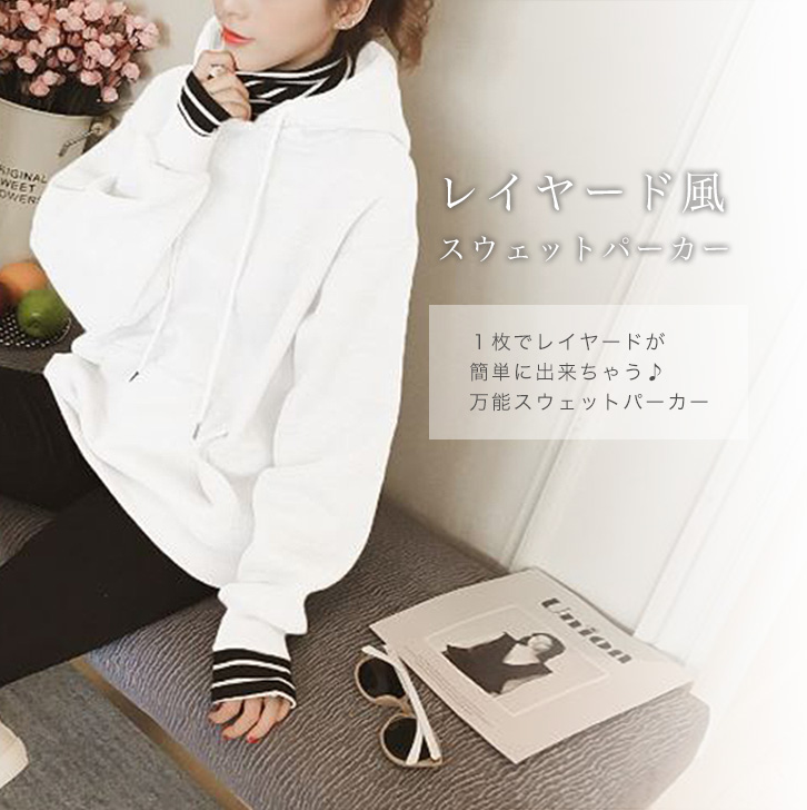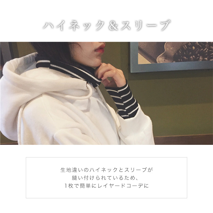 スウェット パーカー レイヤード風 ハイネック レディース カジュアル 裏起毛 スウェットパーカー スリーブ 起毛生地 もこもこ レイヤードコーデ 前ポケット 秋冬
