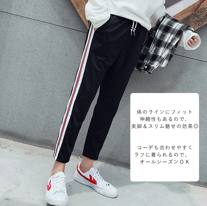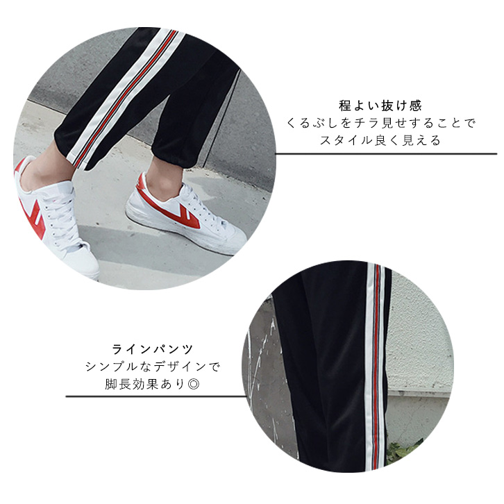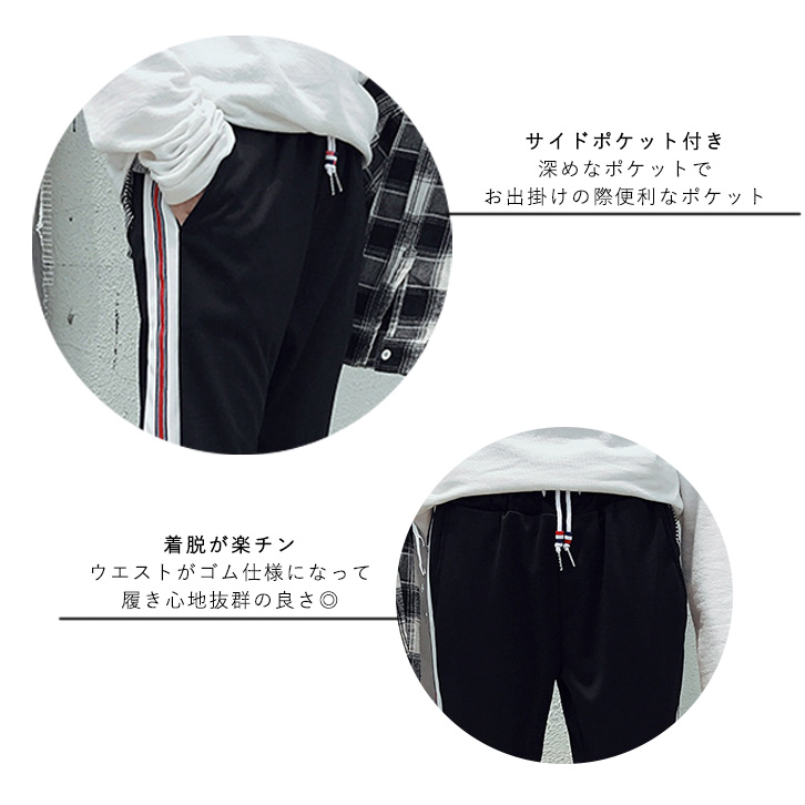 メンズ ラインパンツ ラフ オールシーズン ウエストゴム サイドポケット ユニセックス 男女兼用 シンプル 脚長効果 美脚 履き心地抜群 抜け感 アウトドア