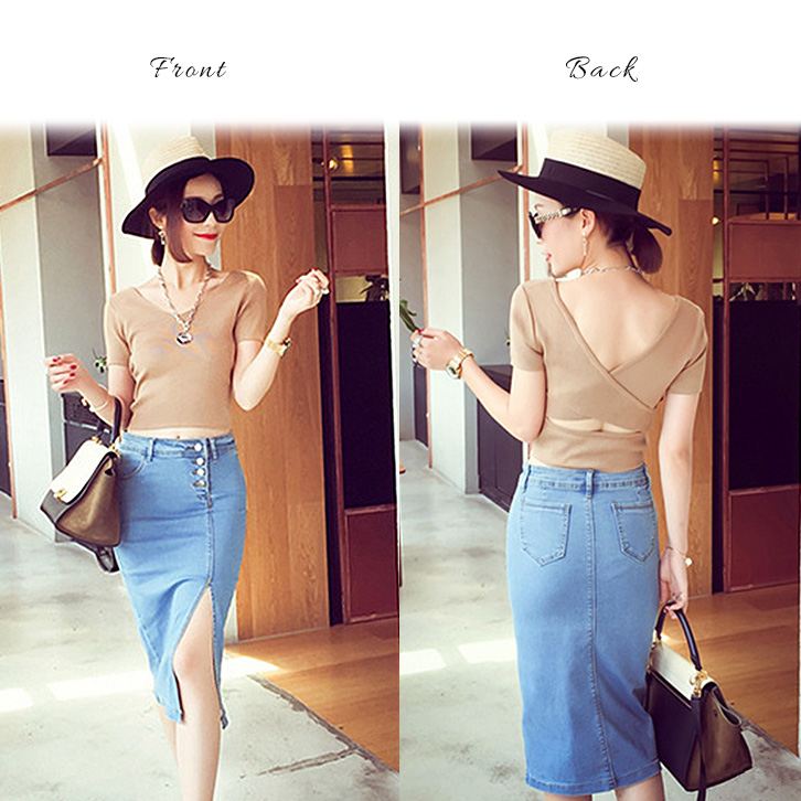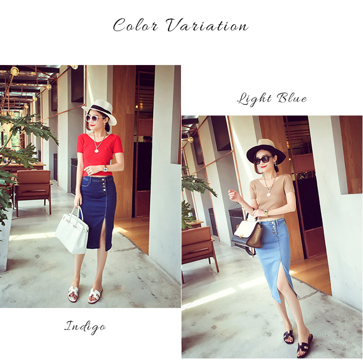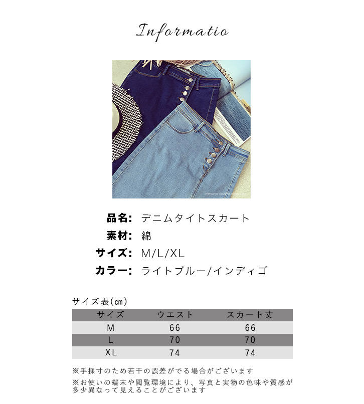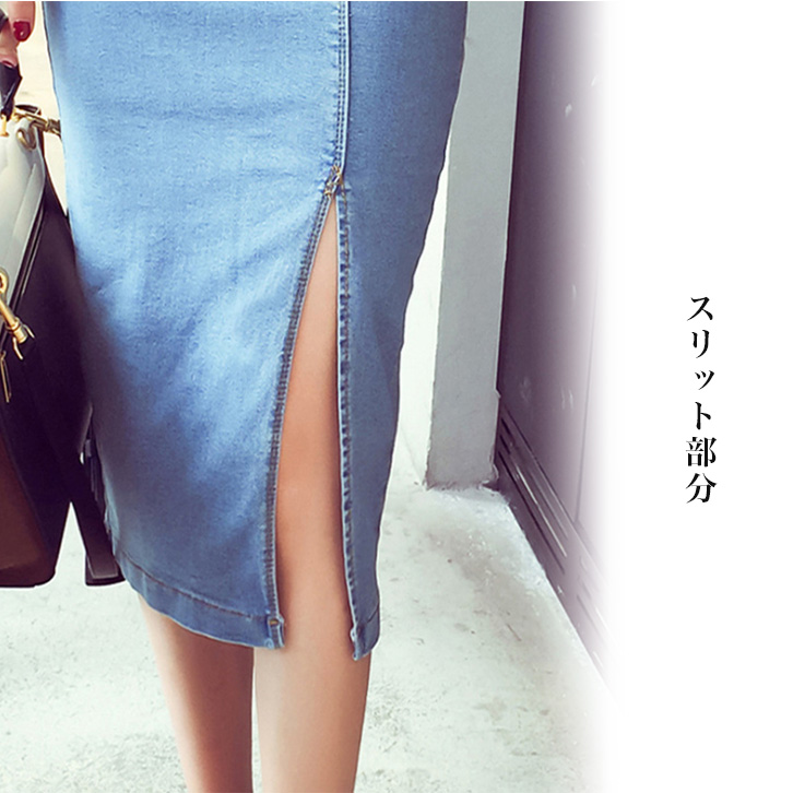 スカート デニムスカート ミモレ丈 タイトスカート デニムタイトスカート タイト スリット エレガント セクシー スリット入り 動きやすい フロントボタン きれいめ おしゃれ ライトブルー インディゴ 美シルエット 全2色
