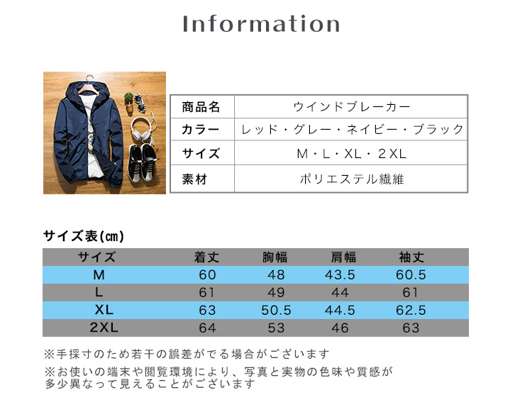 ウインドブレーカー メンズ レディース スポーツウエア 無地ウインドブレーカー シンプル スタイリッシュ サイドポケット レッド グレー ネイビー ブラック ハイフード アウトドア