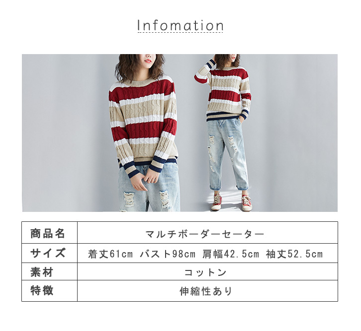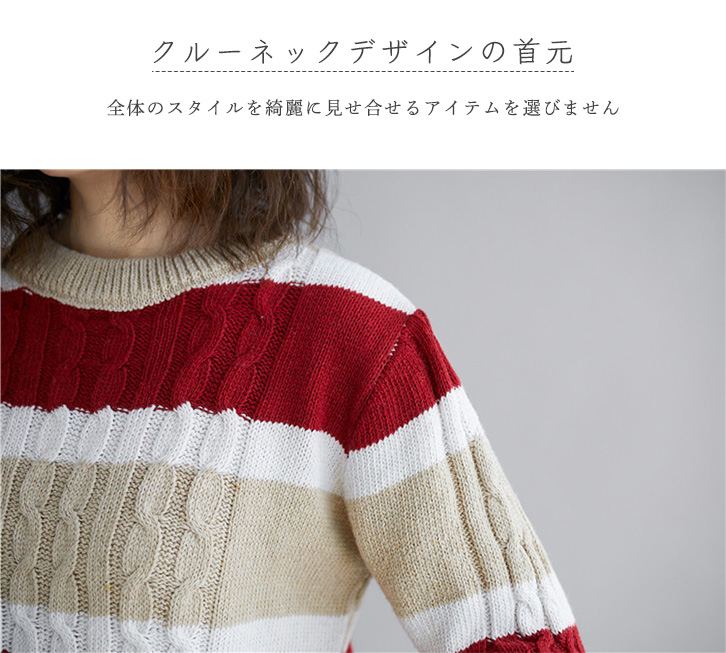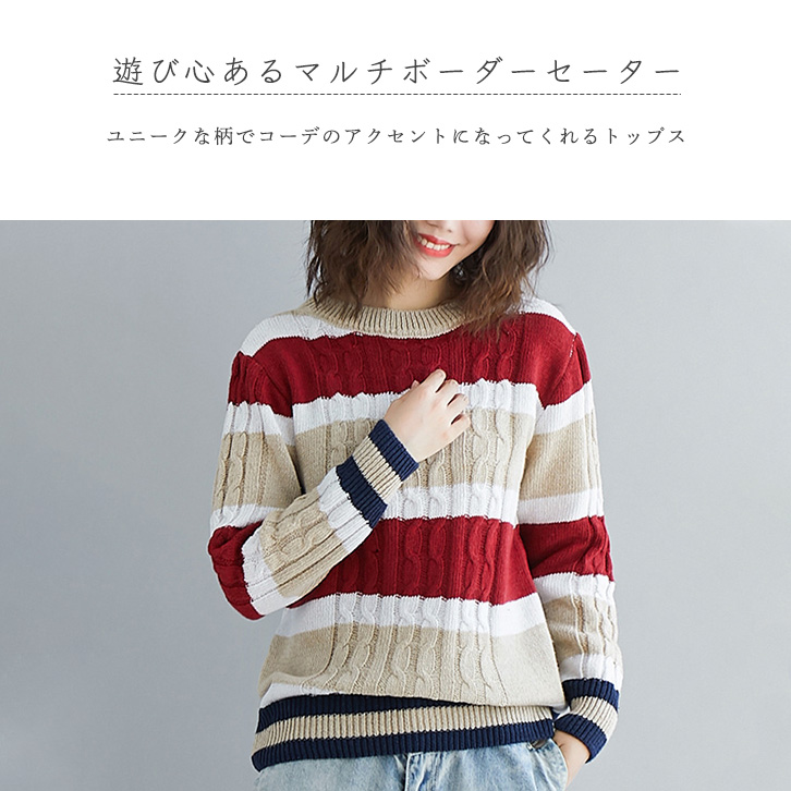 セーター ニット レディース 長袖 ストライプ ストライプセーター カジュアル おしゃれ ふわふわ 肌触り抜群 マルチボーダー 大人カジュアル アクセント 着心地抜群 クルーネック 美シルエット リブ袖 伸縮性 保湿性 あったかい 秋 冬 着痩せ効果