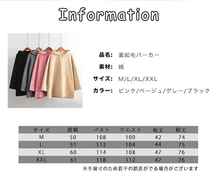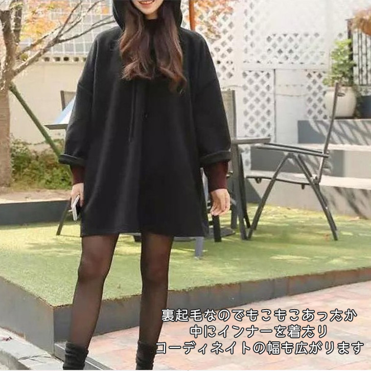 パーカー 長袖 裏起毛パーカー プルオーバー フード付きパーカー もこもこ あったか パーカーワンピース ゆったりシルエット 着回し抜群 無地 シンプル 秋 冬 シンプルパーカー おしゃれ 定番 ピンク ベージュ グレー ブラック