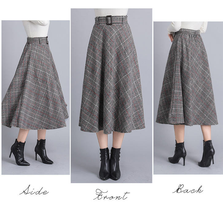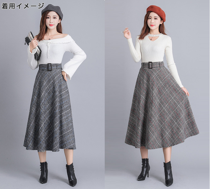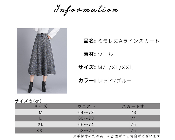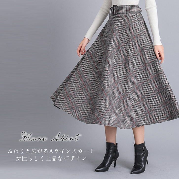 スカート レディーススカート ミモレ丈 Aライン フレアスカート 上品 きれいめ 美ライン ウエストベルト付き 裏地付き チェック柄 秋 冬 おしゃれ かわいい ミモレ丈スカート Aラインフレアスカート レッド ブルー サイズ豊富 秋 冬 クラシカル