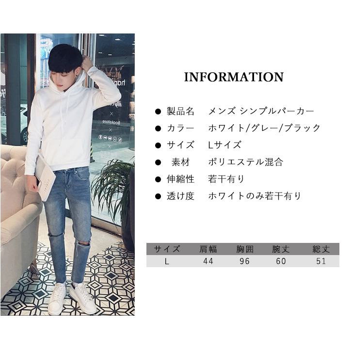 シンプルパーカー メンズ シンプル パーカー ホワイト グレー ブラック 裏起毛仕様 着心地抜群 フード フード付き ゆったりデザイン フロントポケット リブ袖 すっきりシルエット 秋冬 ふんわり感 触り心地抜群 カジュアル 長袖