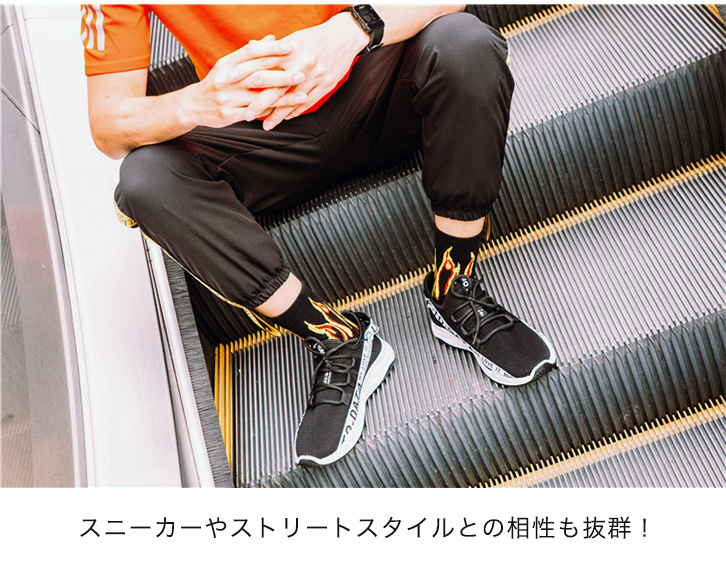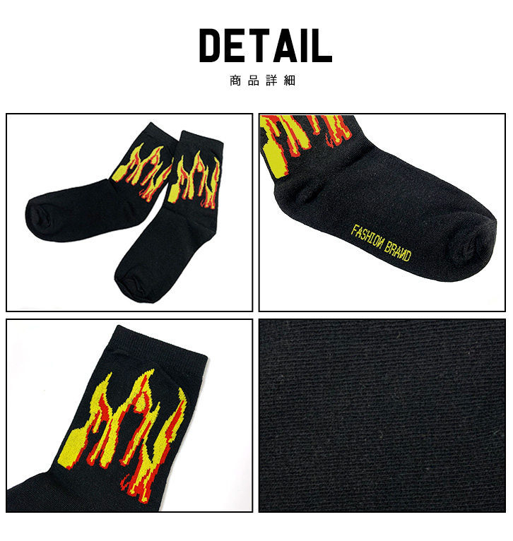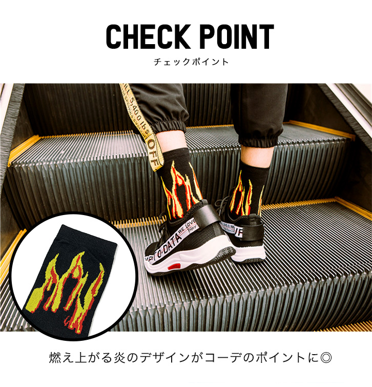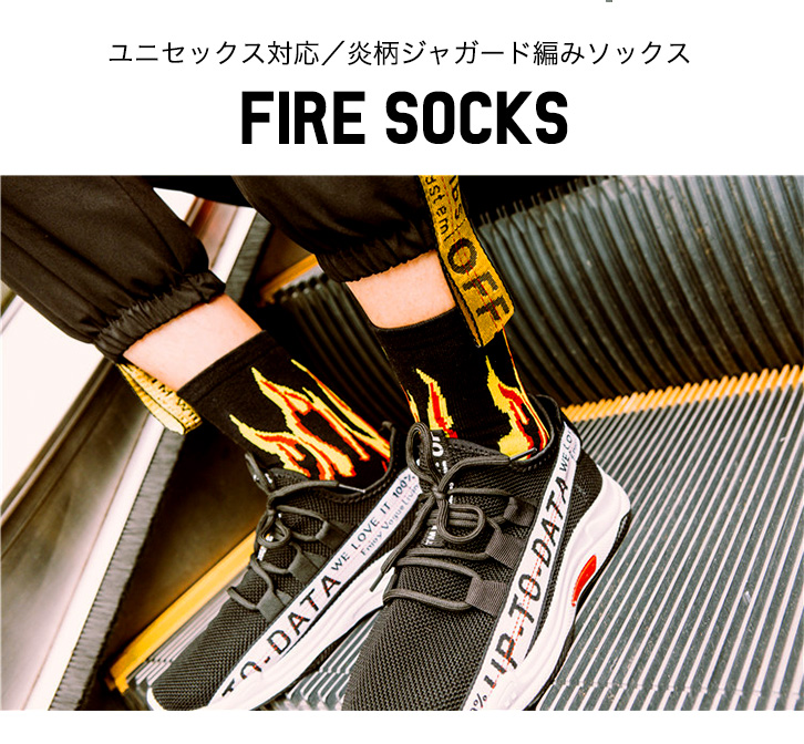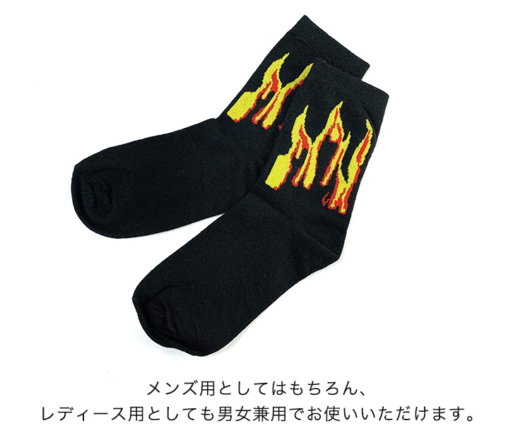 靴下 ソックス ショート丈 ユニセックス ファイヤー 炎 おしゃれ インパクト抜群 メンズ レディース 男女兼用 ストリート スポーティー ロック ファイヤー柄 ミドル丈 くつ下 アメカジ フリーサイズ かっこいい オシャレ アクセント