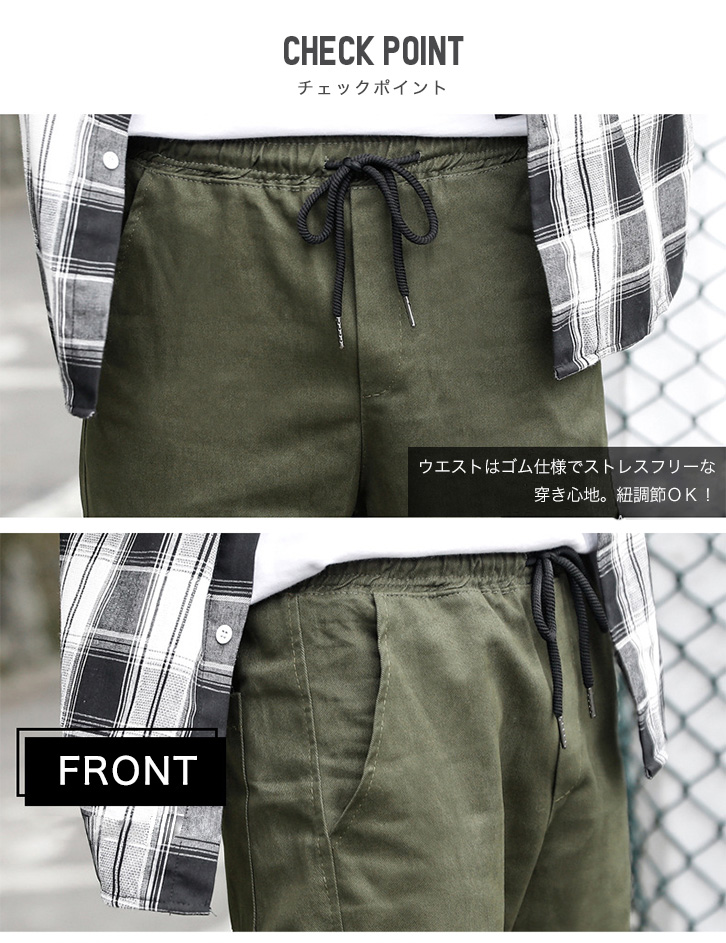 【備考】前後両ポケット×2/フラップポケット×2/ウエスト紐付き/伸縮性なし