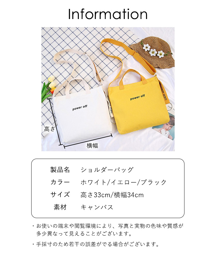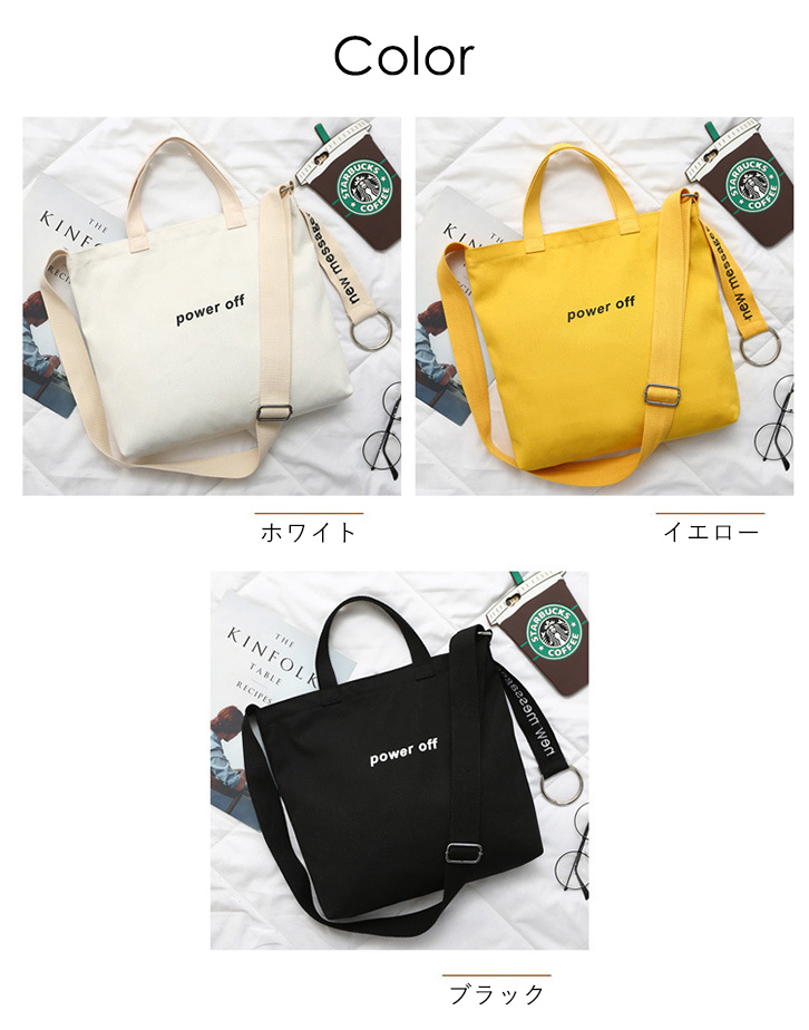 バッグ 2wayバッグ ハンドバッグ ショルダーバッグ トートバッグ 2way シンプル 合わせやすい 長さ調節可能 デイリー 通勤 通学 収納力抜群 カジュアル きれいめ ジッパー開閉 キャンバスバッグ ホワイト イエロー ブラック