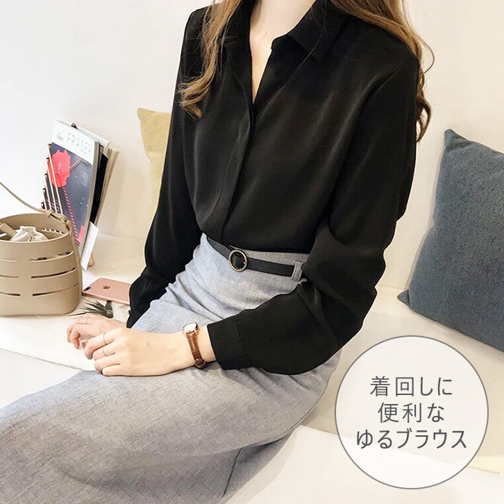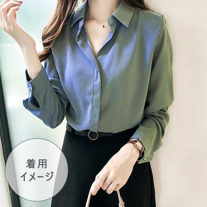 ブラウス レディース オフィス 長袖 ゆるブラウス 着回し力抜群 シンプル 袖ボタン ふんわり素材 着心地抜群 カーキ ブルー ブラック オフィスカジュアル シンプルブラウス トップス 秋物 上品 可愛い 全3色 通勤 シャツ