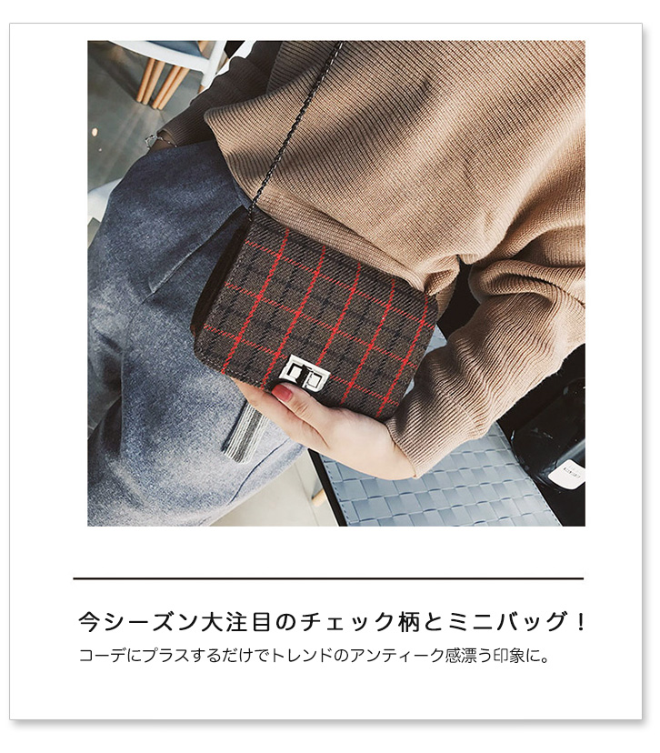 ショルダーバッグ ミニショルダー レディース チェック柄 チェック柄ショルダーバッグ ミニショルダーバッグ スクエア かわいい おしゃれ ミニサイズ マチ広め コンパクト ハンドバッグ ポーチ チェーン取り外し可能 アンティーク