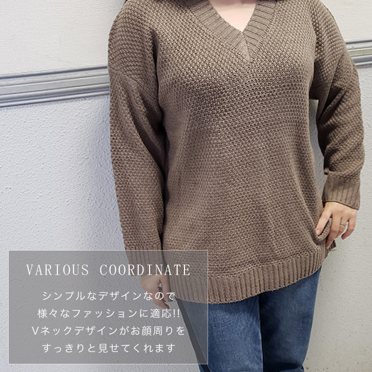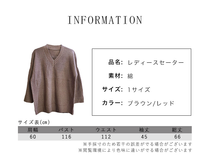 セーター 長袖 レディース Vネック シンプル 合わせやすい 着回し抜群 シンプル 着回し力 レディースセーター ワンサイズ 2カラー ブラウン レッド 秋 冬 定番 おしゃれ カジュアル 大人カジュアル きれいめ かわいい