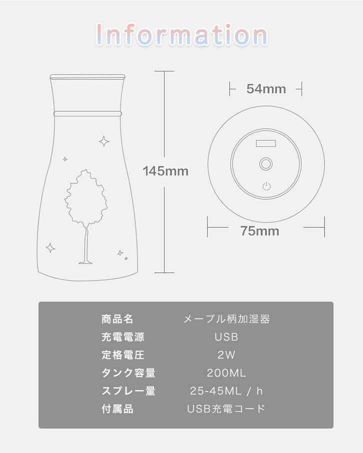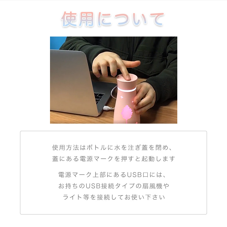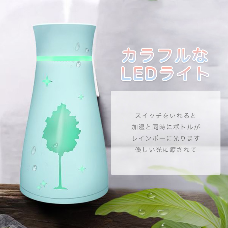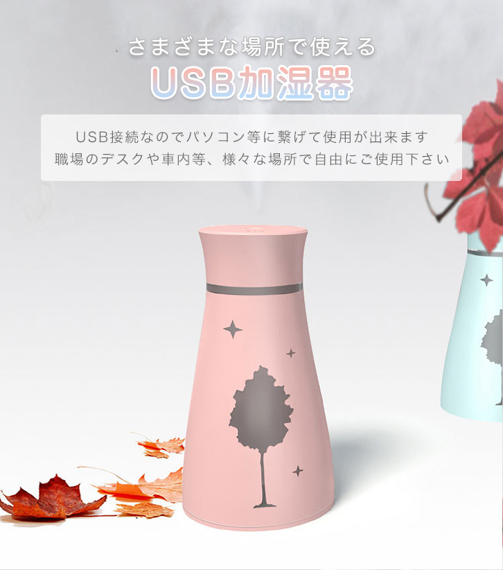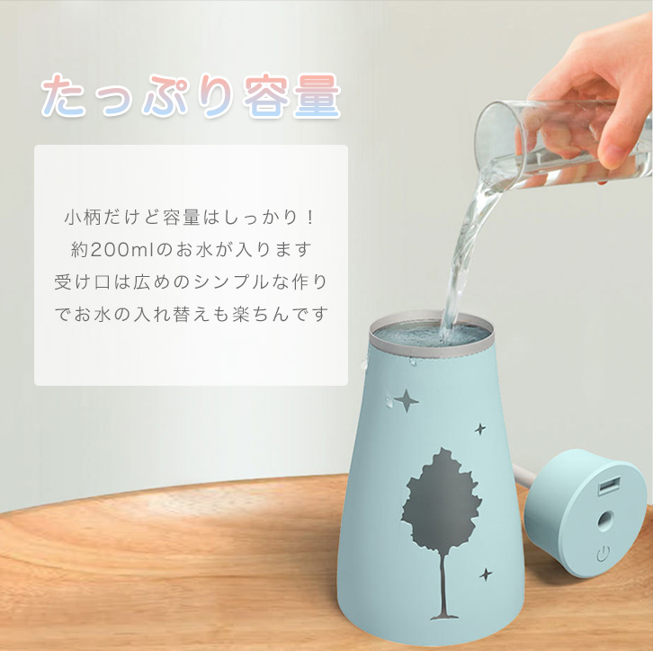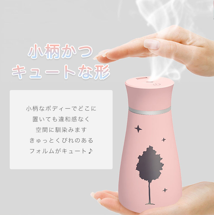 加湿器 ミニ加湿器 ディフューザー USB加湿器 乾燥対策 乾燥防止 USB接続 200ml オフィス デスク 車内 寝室 小型 ミニ キュート ミニサイズ シンプル インテリア LEDライト カラフル 光る ミスト 全3カラー ホワイト ブルー ピンク