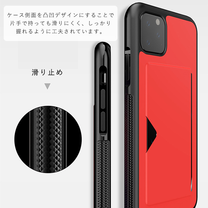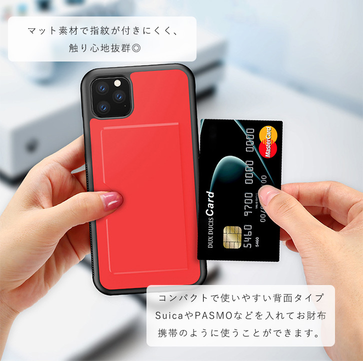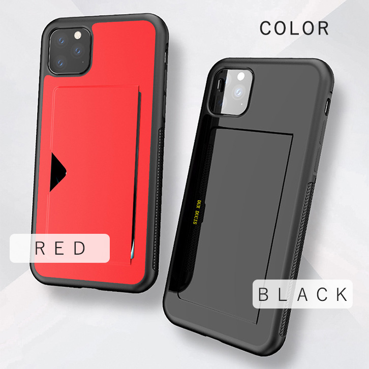 iPhoneケース iPhoneカバー アイフォン ケース カバー iPhone11 iPhonePro iPhone11ProMAX マット素材 指紋が付きにくい 触り心地抜群 カードポケット付き 背面カードポケット付き 滑り止め ワイヤレス充電対応 レッド ブラック