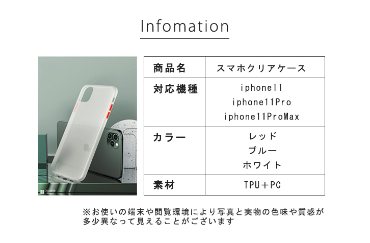 iPhoneケース iPhoneカバー アイフォン ケース カバー iPhone11 iPhonePro iPhone11ProMAX クリアケース マットケース シンプル デザイン性 機能性 耐衝撃 ワイヤレス充電対応 レッド ホワイト ブルー 全3色 3カラー 3色展開 男女兼用 レディース メンズ