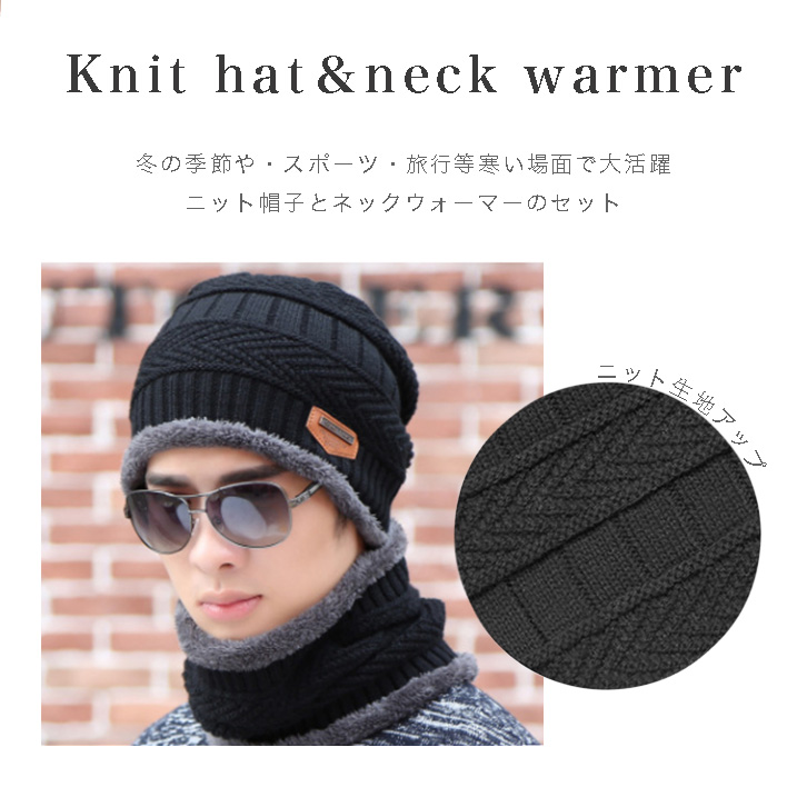 ニット帽 帽子 ネックウォーマー ぼうし メンズ レディース ユニセックス 秋 冬 保温性抜群 防寒対策 裏起毛 あったか 暖かい 寒さ対策 シンプル アウトドア スポーツ デイリー 肌触り抜群 ポイントロゴ付き 全4カラー