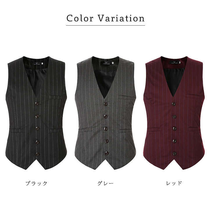 ベスト メンズ じれベスト スーツベスト ビジネスベスト フォーマルベスト スーツ ビジネス フォーマル スタイリッシュベスト ジレ チョッキ ストライプ柄 シンプル 合わせやすい 全3カラー レッド グレー ブラック