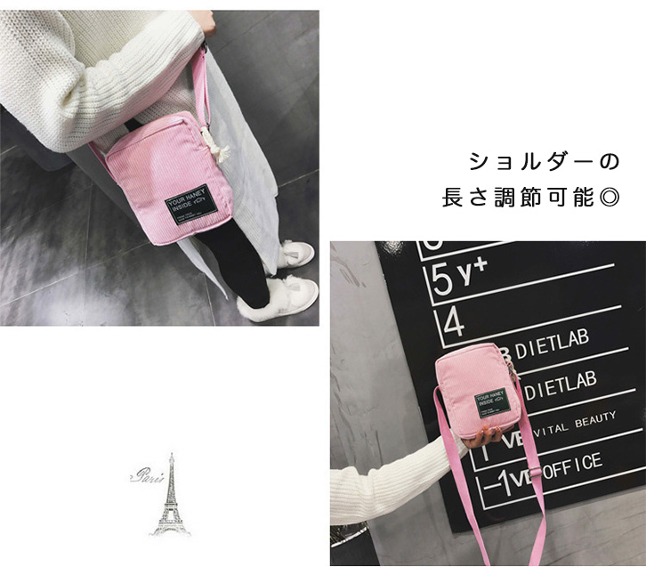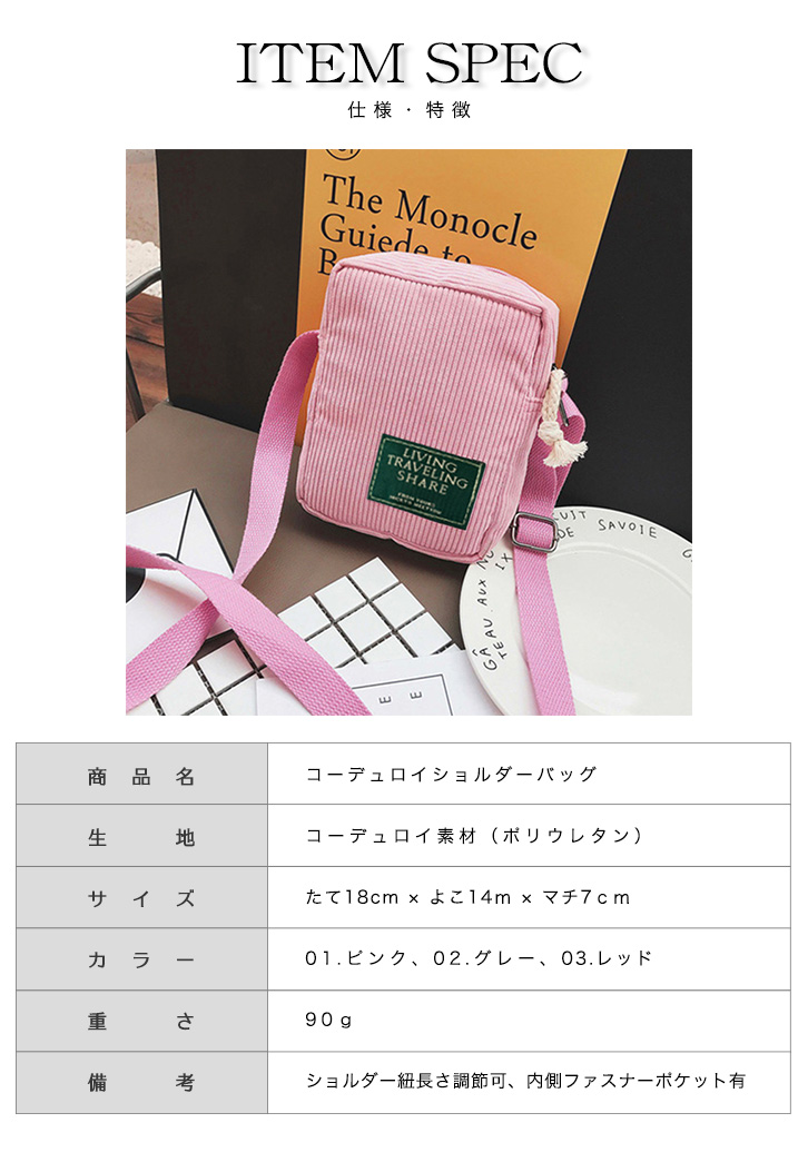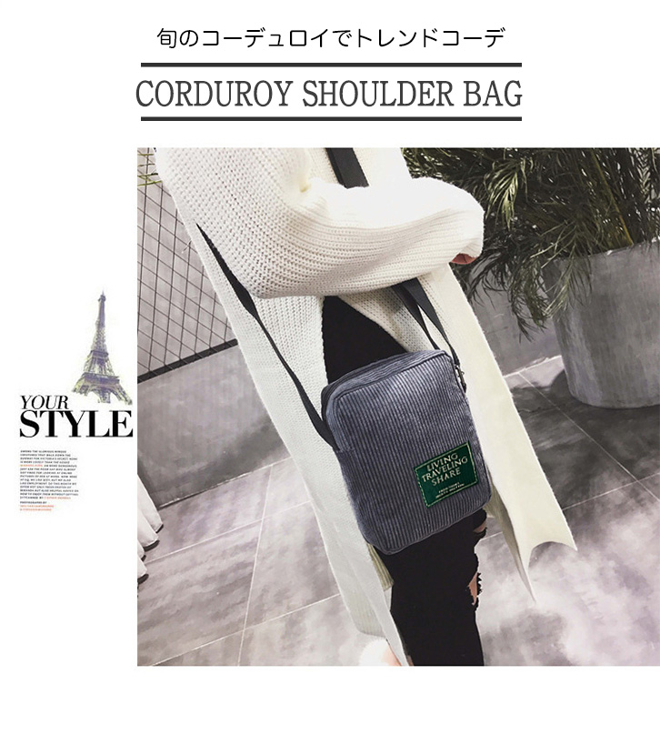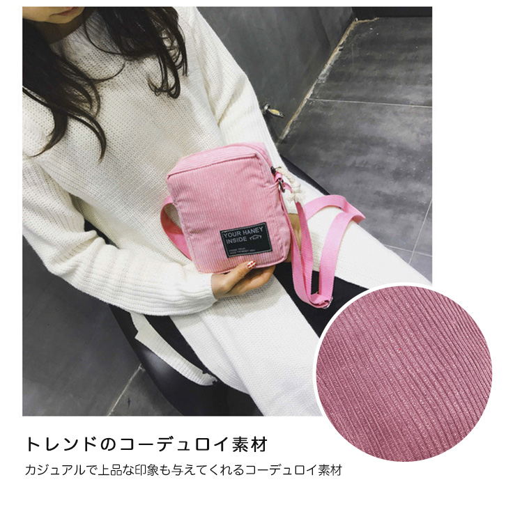 ショルダーバッグ 肩掛け ミニショルダー バッグ コーデュロイ トレンド カジュアル オシャレ シンプル ミニバッグ お出かけ 散歩 デイリー使い ショルダー紐長さ調節可能 ミニサイズ 合わせやすい スクエア型 全3色 ピンク グレー レッド