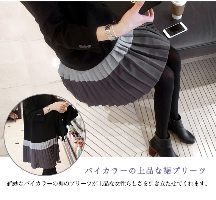 バイカラーデザインがオシャレな裾プリーツスカートは