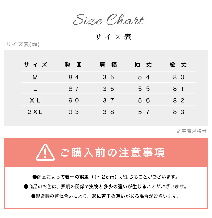 Lサイズ/胸囲87、肩幅36、袖丈55、総丈81