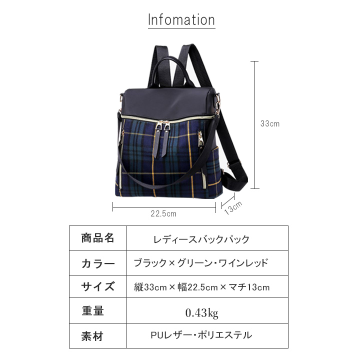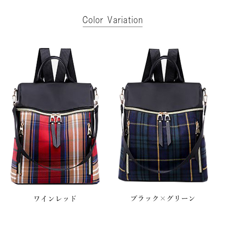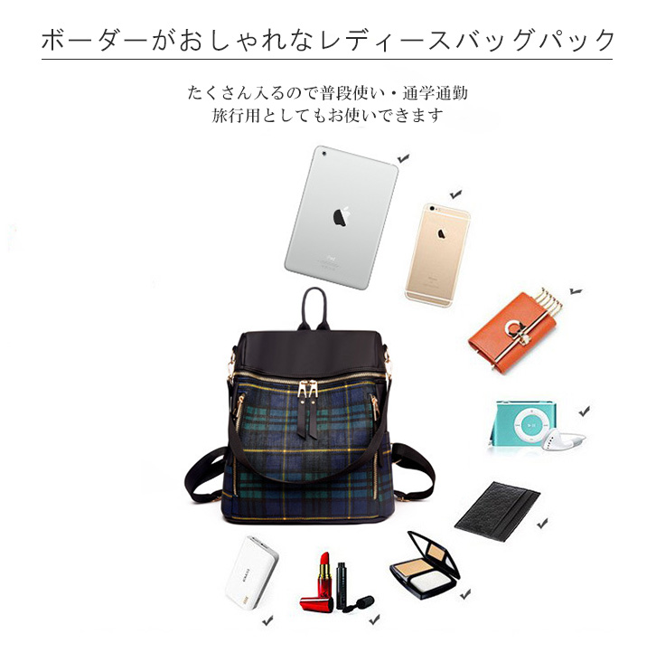 バックパック リュック レディース ボーダーチェック おしゃれ 大人かわいい キュート 大容量収納 デイリー 通勤 通学 旅行 収納ポケット多数 収納力抜群 イヤホンホール付き ショルダーバッグ 2way ストラップ取り外し可能