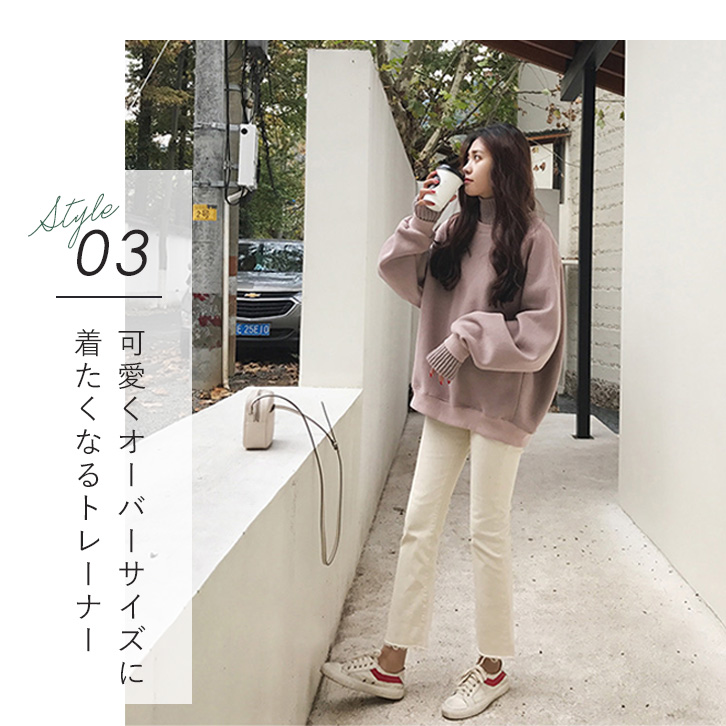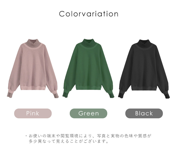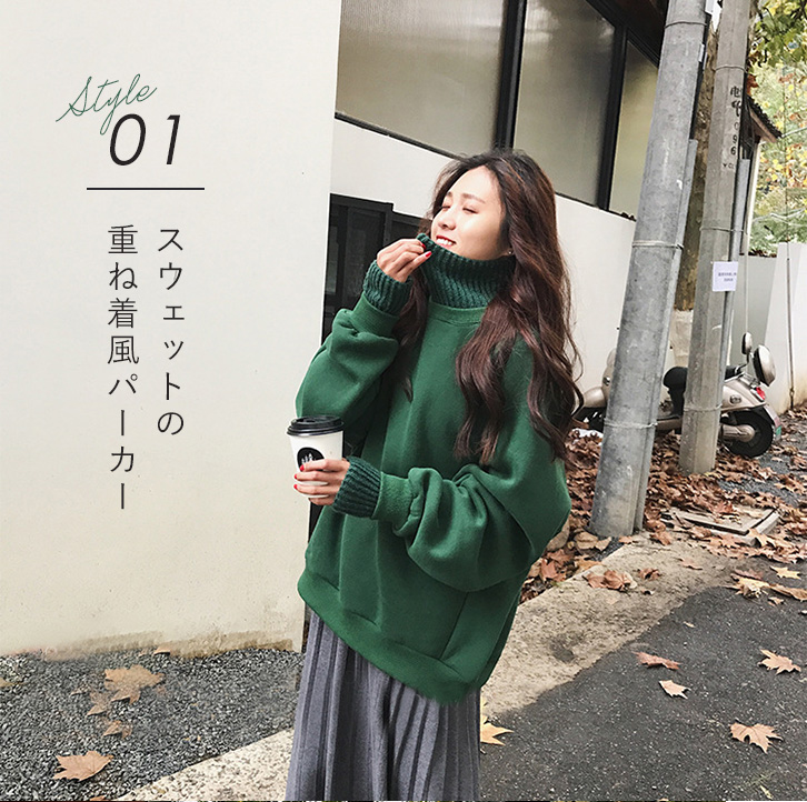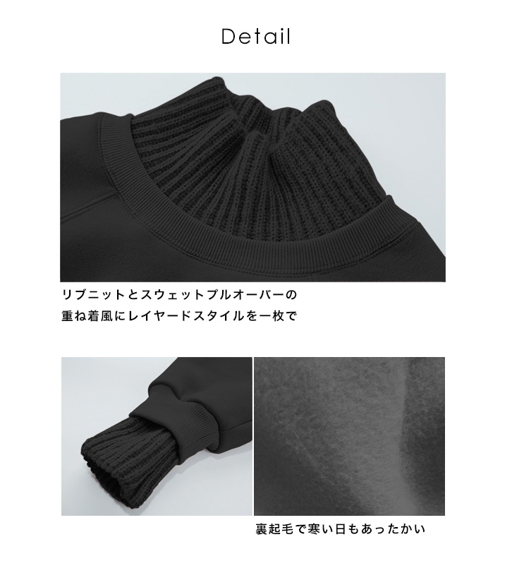 ゆったりシルエットの重ね着風ハイネックスウェット♪