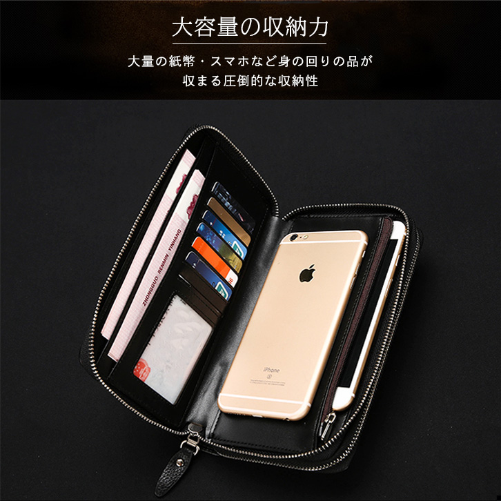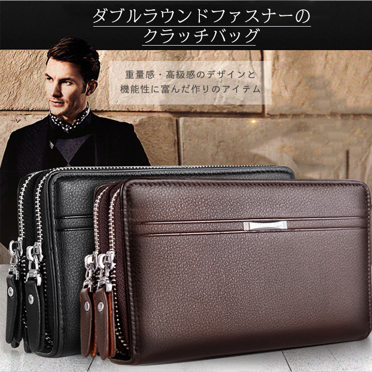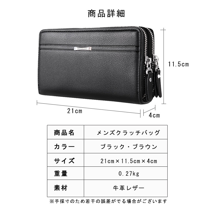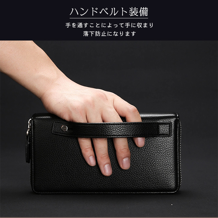クラッチバック メンズ ハンドバッグ セカンドバグ 本革 ビジネスバッグ 牛革レザー 高級感 上品 ダブルファスナー 機能的 収納力抜群 財布 ウォレット 長財布 防水性 耐衝撃 ハンドベルト付き 落下防止 おしゃれ