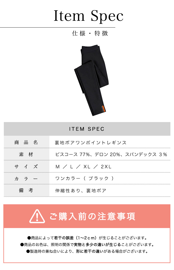 レギンス レギンスパンツ レディース ワンポイントレギンス 裏地ボア あったか 暖かい 全面裏地ボア ふかふか ふわふわ ストレッチ素材 動きやすい 美脚シルエット ウエストゴム サイズ豊富 ブラック 防寒 冬